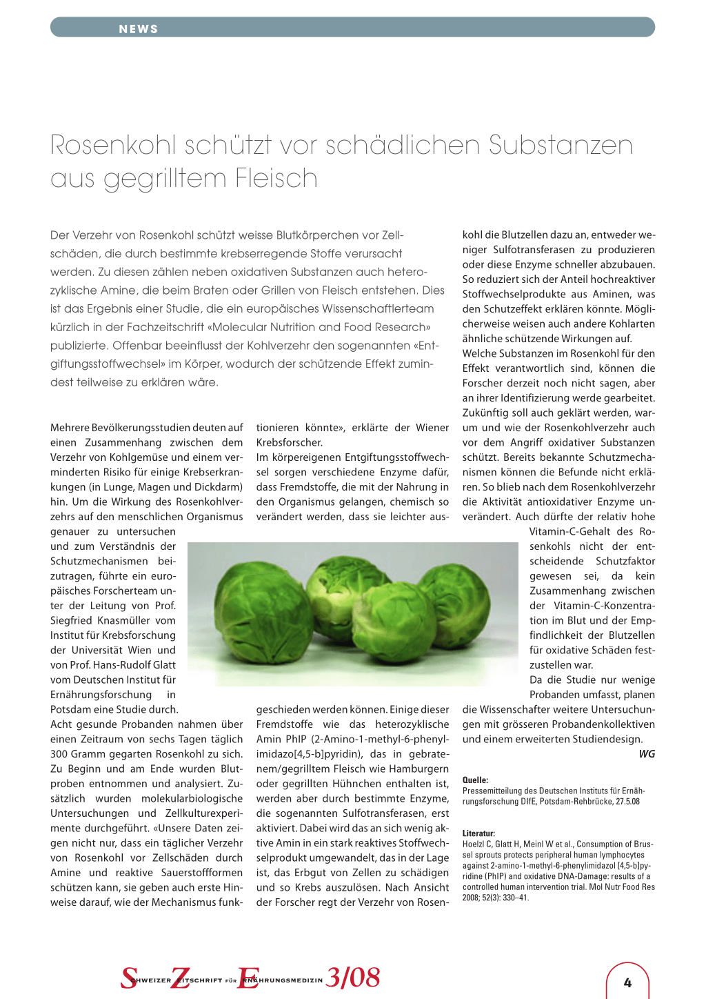 Vitamin-C-Gehalt des Rosenkohls nicht der entscheidende Schutzfaktor gewesen sei, da kein Zusammenhang zwischen der Vitamin-C-Konzentration im Blut und der Empfindlichkeit der Blutzellen für oxidative Schäden festzustellen war. Da die Studie nur wenige Probanden umfasst, planen die Wissenschafter weitere Untersuchungen mit grösseren Probandenkollektiven und einem erweiterten Studiendesign.