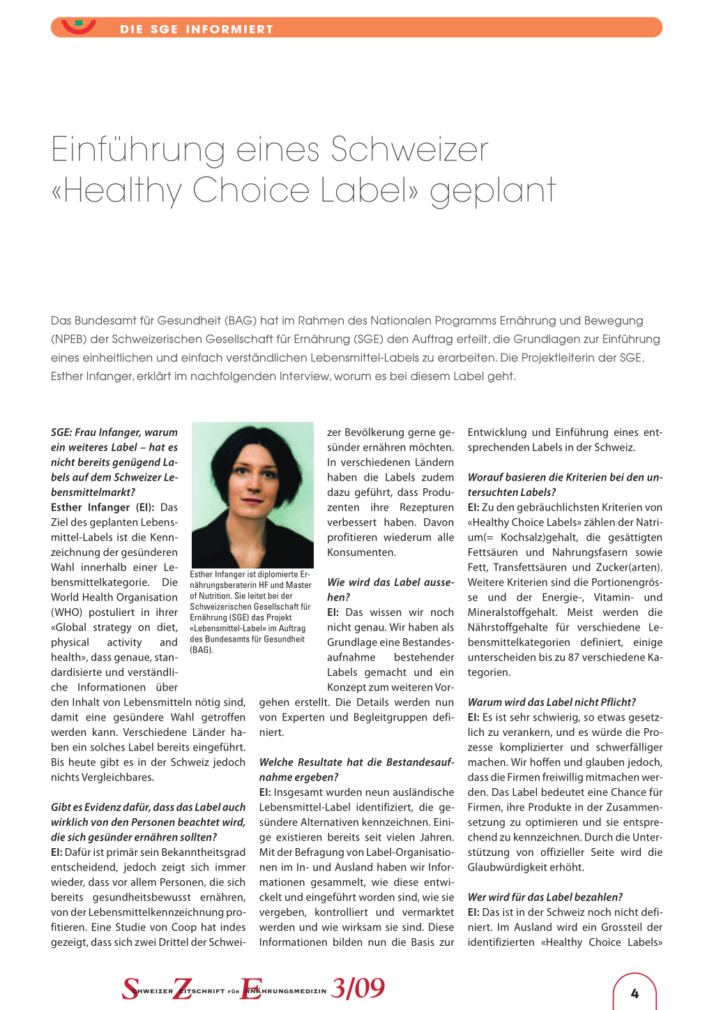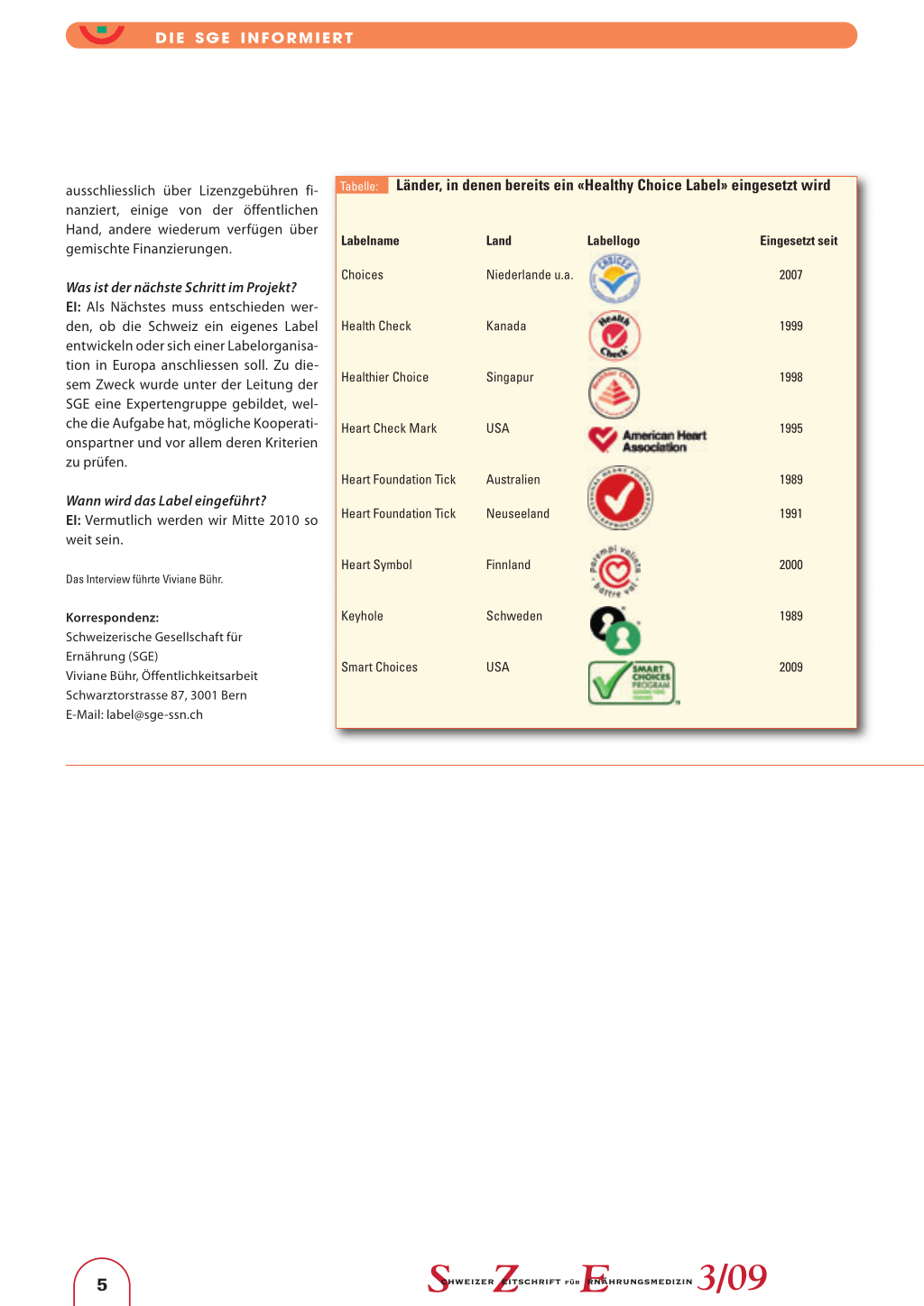 Korrespondenz: Schweizerische Gesellschaft für Ernährung (SGE) Viviane Bühr, Öffentlichkeitsarbeit Schwarztorstrasse 87, 3001 Bern E-Mail: label@sge-ssn.ch