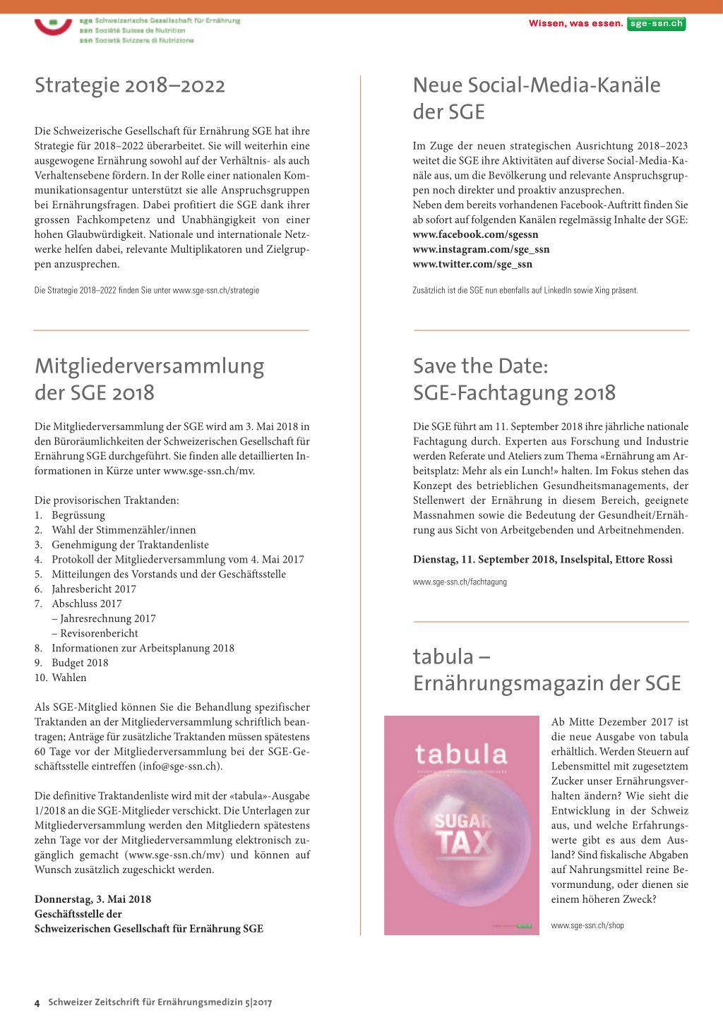4 Schweizer Zeitschrift für Ernährungsmedizin 5|2017