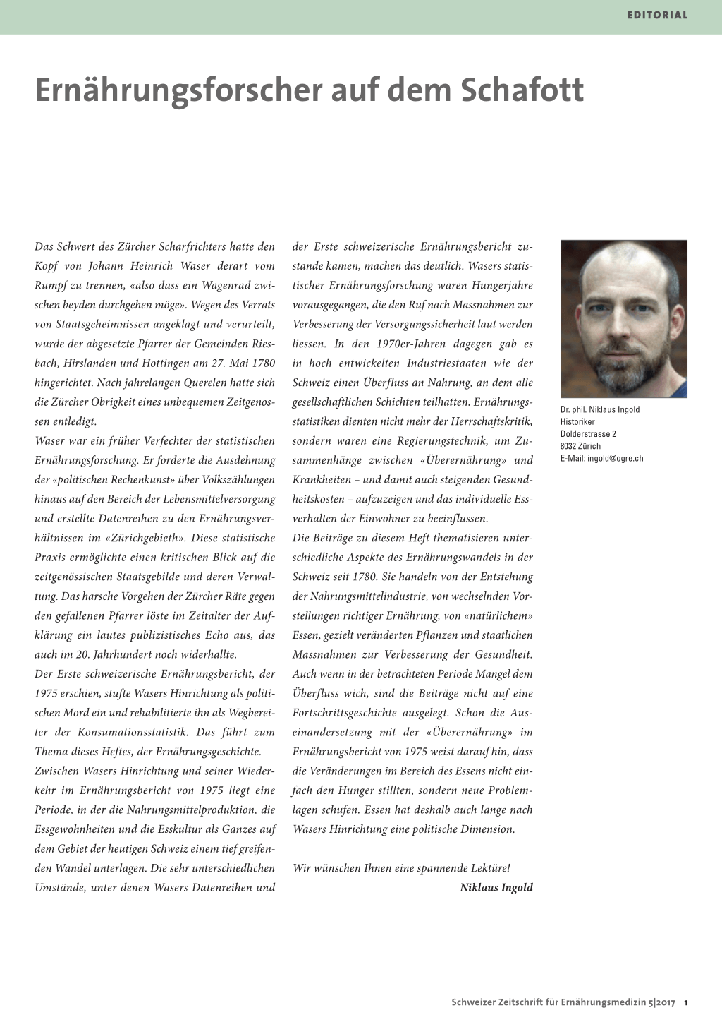 Dr. phil. Niklaus Ingold Historiker Dolderstrasse 2 8032 Zürich E-Mail: ingold@ogre.ch