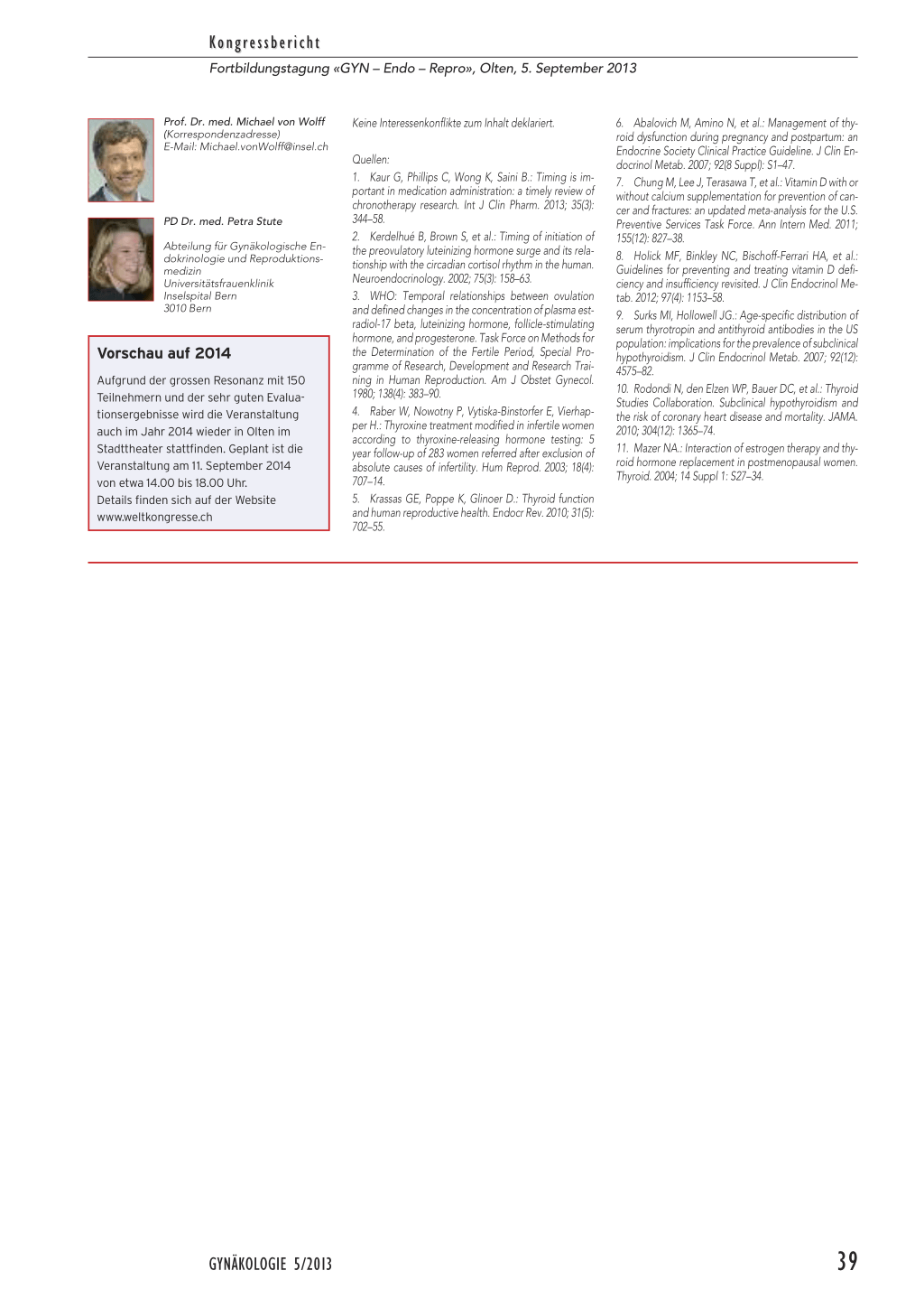 Prof. Dr. med. Michael von Wolff (Korrespondenzadresse) E-Mail: Michael.vonWolff@insel.ch