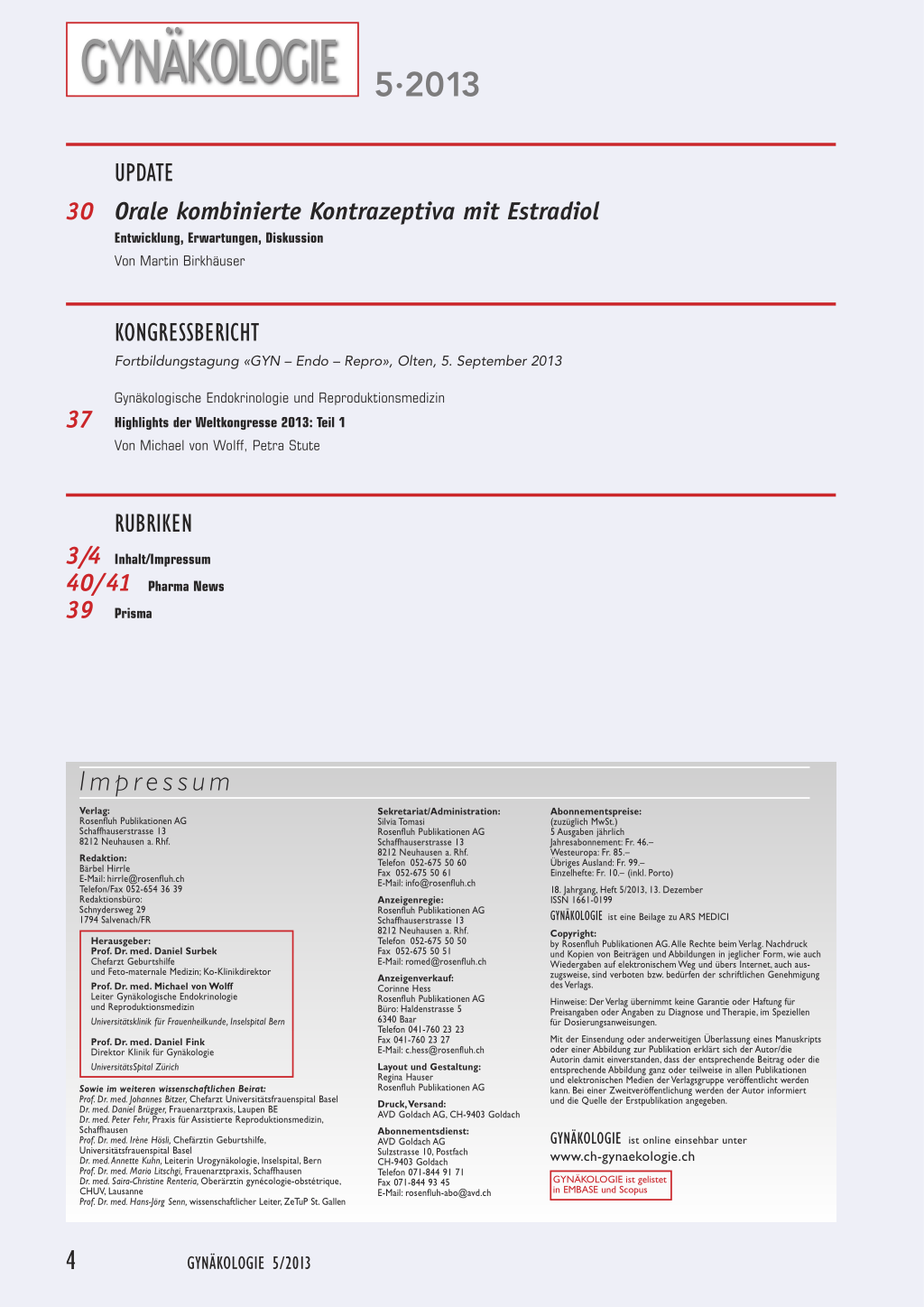 GYNÄKOLOGIE 5.2013 In dieser Ausgabe
