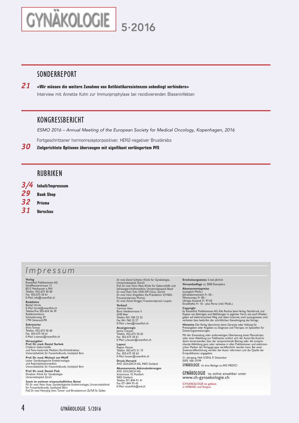 GYNÄKOLOGIE 5.2016 In dieser Ausgabe