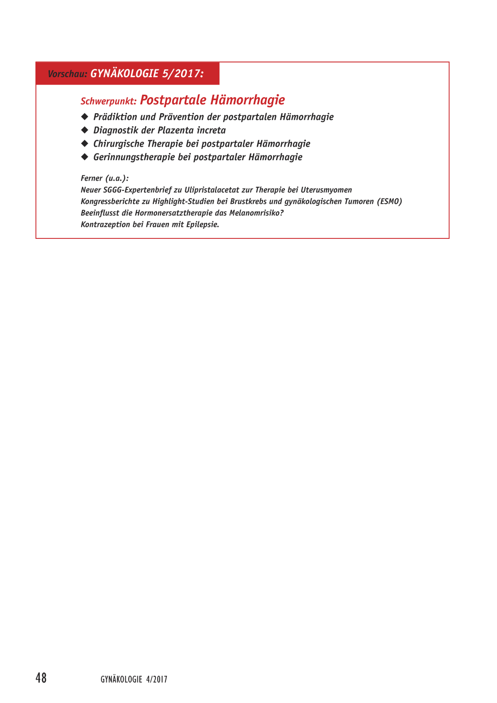 Vorschau: GYNÄKOLOGIE 5/2017:
