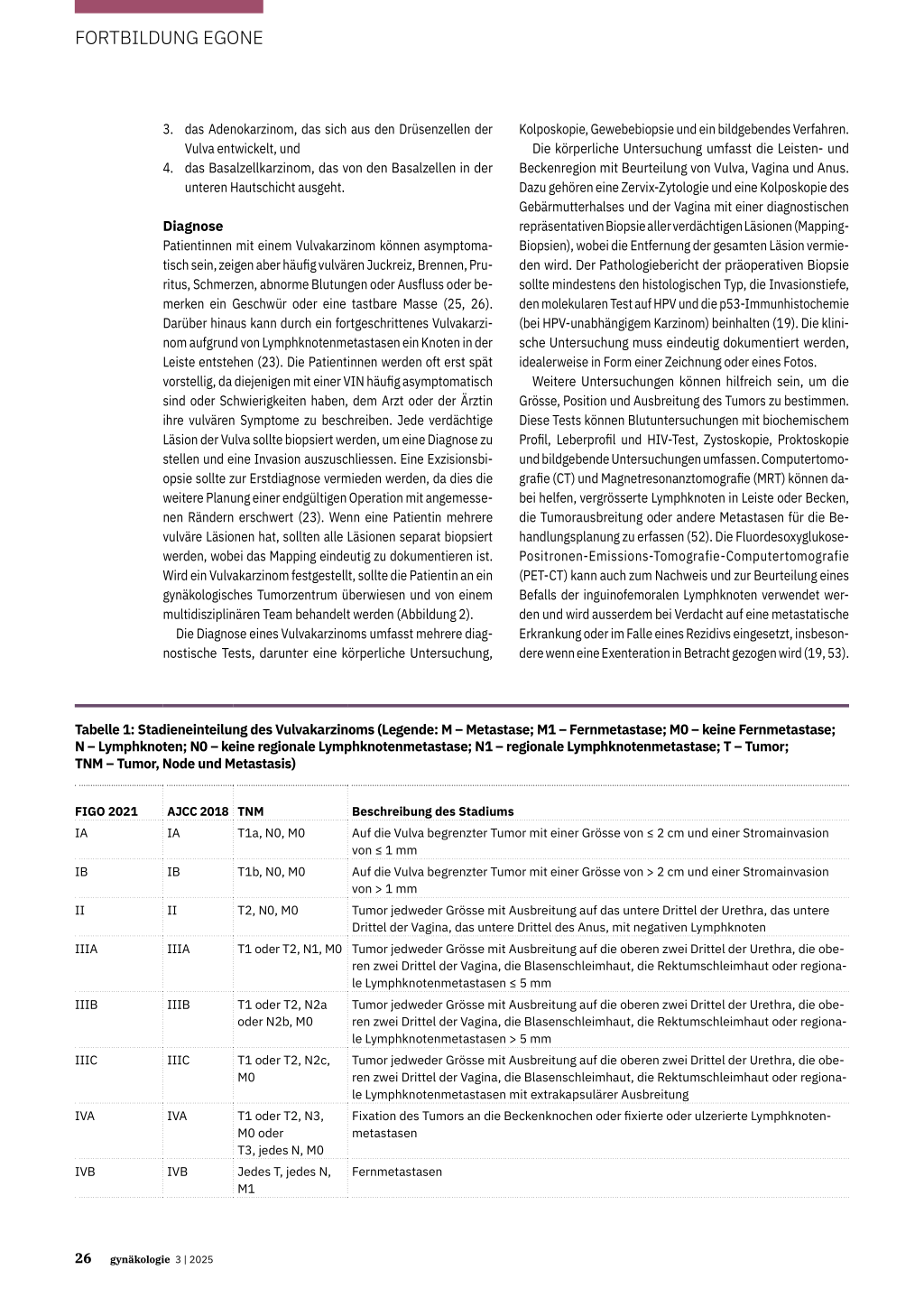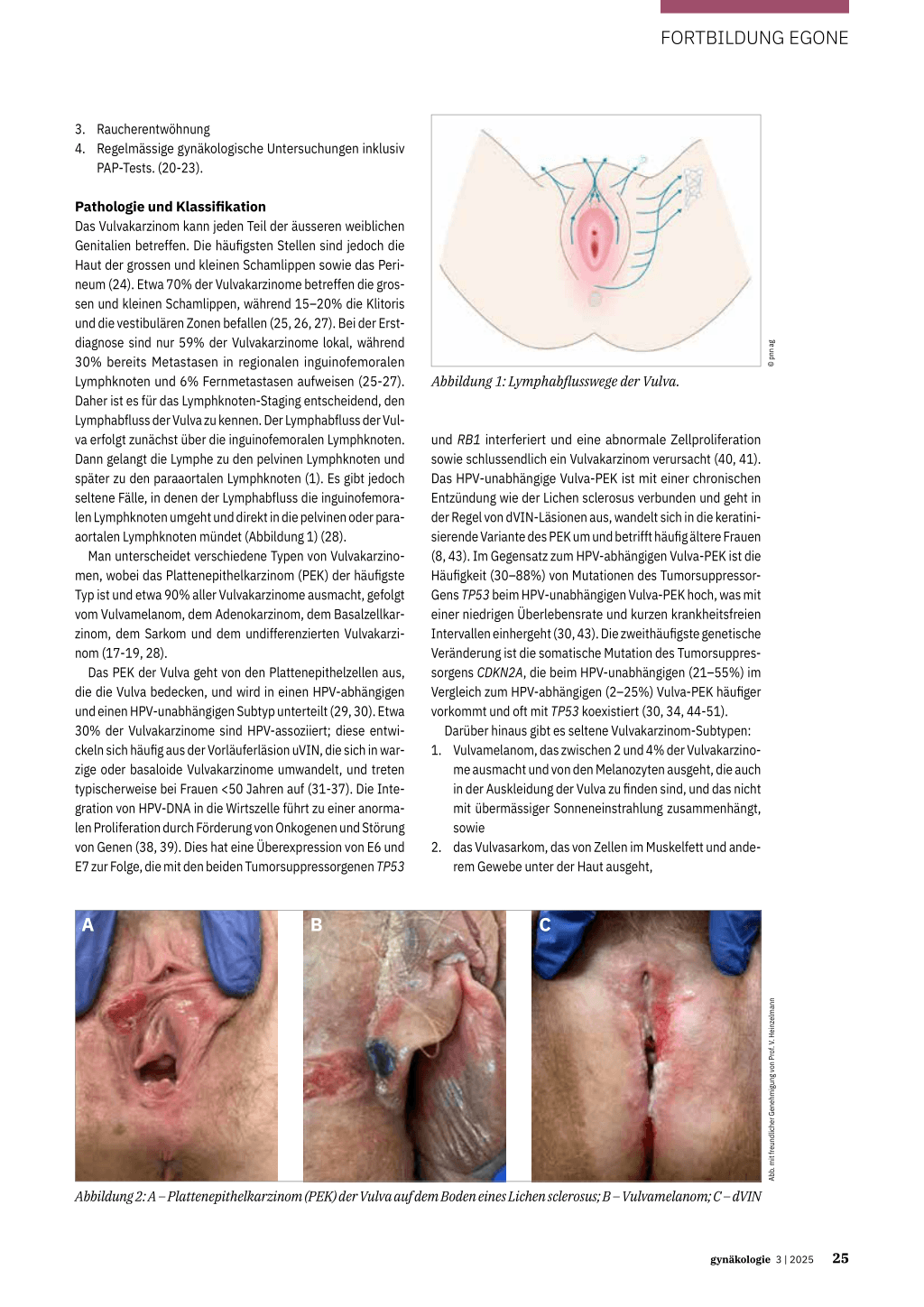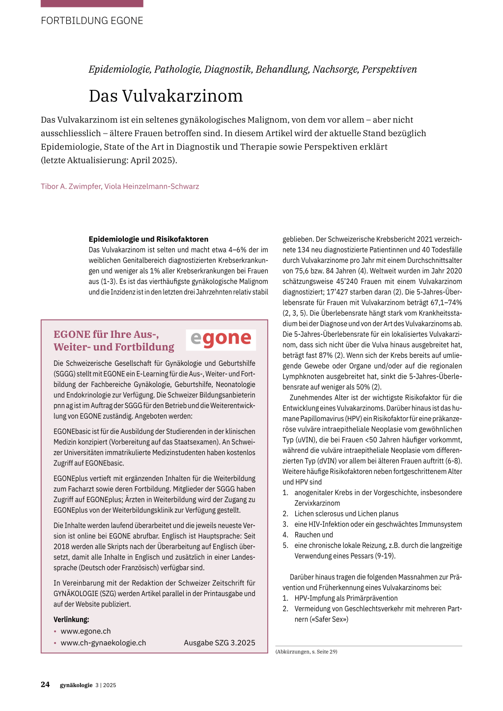 https://www.cancer.net/cancer-types/vulvar-cancer/statistics. Last accessed April 1, 2024 3. Cancer Research UK : Vulval cancer statistics. https://www.cancerresearchuk.org/health-professional/cancer-statistics/statistics-by- cancer-type/vulval-cancer#vulval_stats2 Last accessed June 17, 2025 4. Bundesamt für Statistik: Schweizerischer Krebsbericht 2021 - Stand und Entwicklungen. https://www.bfs.admin.ch/asset/de/19305696. Last accessed August 28, 2022 5. Zentrum für Krebsregisterdaten: Krebs der Vulva (Vulvakarzinom). https://www.krebsdaten.de/Krebs/DE/Content/Krebsarten/Vulvakrebs/vulvakrebs_node.html Last accessed August 12, 2022 6. Sideri M, Jones RW, Wilkinson EJ, Preti M, Heller DS, Scurry J et al. : Squamous vulvar intraepithelial neoplasia: 2004 modified terminology, ISSVD Vulvar Oncology Subcommittee. J Reprod Med. 2005 Nov;50(11):807–810. 7. Pepas L, Kaushik S, Nordin A, Bryant A, Lawrie TA. : Medical interventions for high-grade vulval intraepithelial neoplasia. Cochrane Database Syst Rev. 2015 Aug 18;(8):CD007924. 8. Cohen PA, Anderson L, Eva L, Scurry J. : Clinical and molecular classification of vulvar squamous pre-cancers. Int J Gynecol Cancer. 2019 May;29(4):821–828. 9. Schiffman M, Kjaer SK.: Chapter 2: natural history of anogenital human papillomavirus infection and neoplasia. JNCI Monographs. 2003 Jun 1;2003(31):14–19. 10. Muigai J, Jacob L, Dinas K, Kostev K, Kalder M.: Potential delay in the diagnosis of vulvar cancer and associated risk factors in women treated in German gynecological practices. Oncotarget. 2018 Feb 2;9(9):8725–8730. 11. Xiao X, Meng Y-B, Bai P, Zou J, Zhang Y, Nguyen TMB et al. Vulvar cancer in china: epidemiological features and risk analysis. J Cancer. 2017 Aug 25;8(15):2950–2958. 12. Faber MT, Sand FL, Albieri V, Norrild B, Kjaer SK, Verdoodt F. Prevalence and type distribution of human papillomavirus in squamous cell carcinoma and intraepithelial neoplasia of the vulva. Int J Cancer. 2017 Sep 15;141(6):1161–1169 13. Barlow EL, Kang Y-J, Hacker NF, Canfell K. Changing trends in vulvar cancer incidence and mortality rates in australia since 1982. Int J Gynecol Cancer. 2015 Nov;25(9):1683–1689 14. Rantshabeng PS, Moyo S, Moraka NO, Ndlovu A, MacLeod IJ, Gaseitsiwe S et al. Prevalence of oncogenic human papillomavirus genotypes in patients diagnosed with anogenital malignancies in Botswana. BMC Infect Dis. 2017 Nov 25;17(1):731