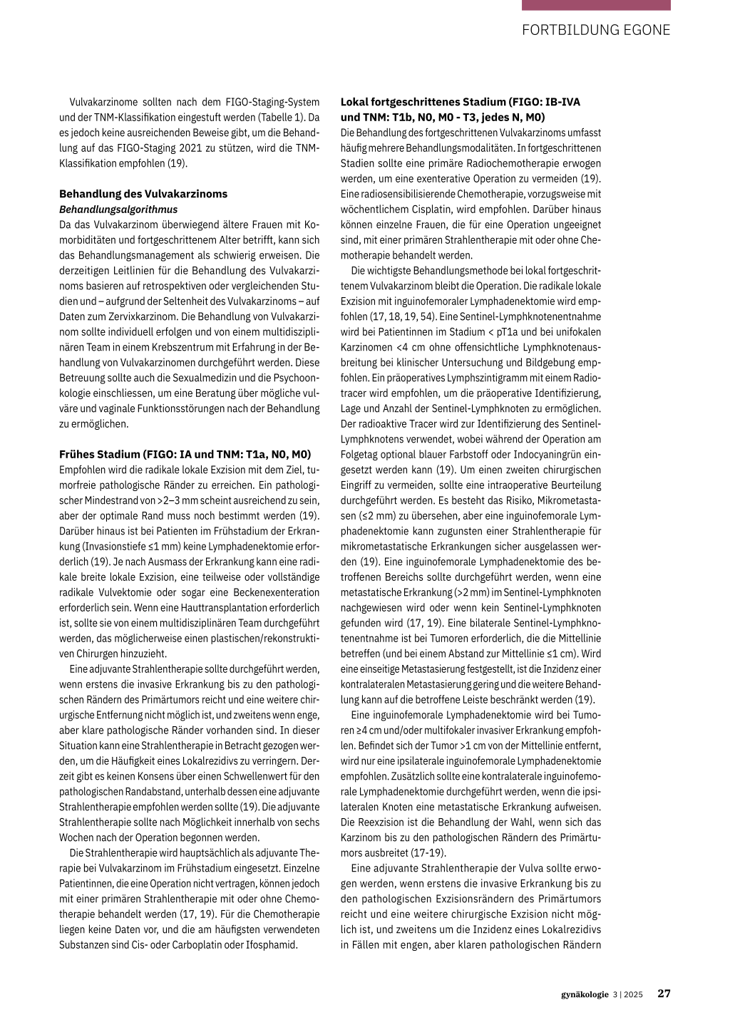 Behandlung des Vulvakarzinoms Behandlungsalgorithmus Da das Vulvakarzinom überwiegend ältere Frauen mit Komorbiditäten und fortgeschrittenem Alter betrifft, kann sich das Behandlungsmanagement als schwierig erweisen. Die derzeitigen Leitlinien für die Behandlung des Vulvakarzinoms basieren auf retrospektiven oder vergleichenden Studien und – aufgrund der Seltenheit des Vulvakarzinoms – auf Daten zum Zervixkarzinom. Die Behandlung von Vulvakarzinom sollte individuell erfolgen und von einem multidisziplinären Team in einem Krebszentrum mit Erfahrung in der Behandlung von Vulvakarzinomen durchgeführt werden. Diese Betreuung sollte auch die Sexualmedizin und die Psychoonkologie einschliessen, um eine Beratung über mögliche vulväre und vaginale Funktionsstörungen nach der Behandlung zu ermöglichen.