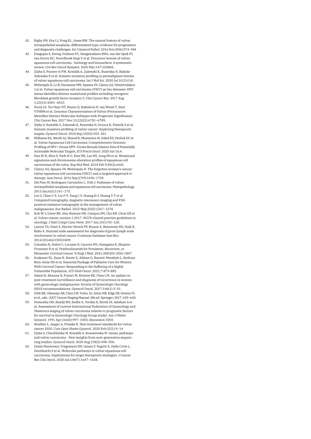 61. Zięba S, Chechlińska M, Kowalik A, Kowalewska M. Genes, pathways and vulvar carcinoma - New insights from next-generation sequencing studies. Gynecol Oncol. 2020 Aug;158(2):498–506.