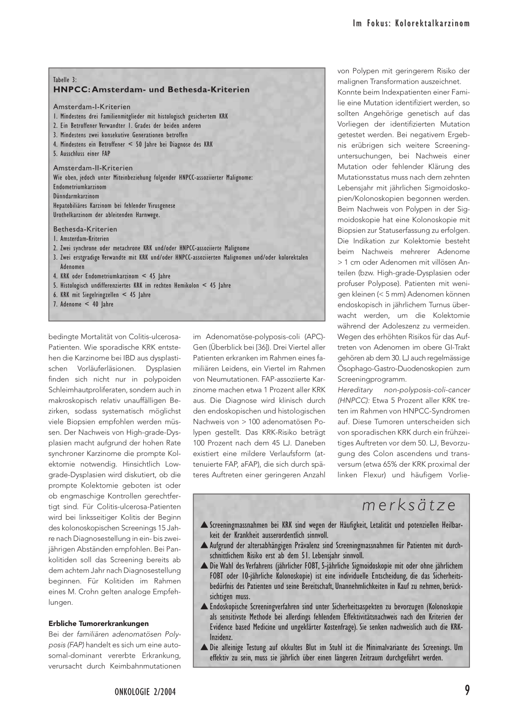 (siehe Tabelle 3). Auch beim HNPCC soll