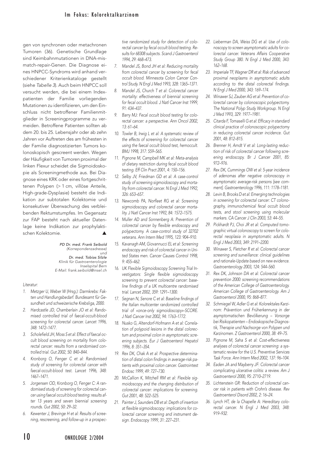 PD Dr. med. Frank Seibold (Korrepondenzadresse) und Dr. med. Tobias Silzle