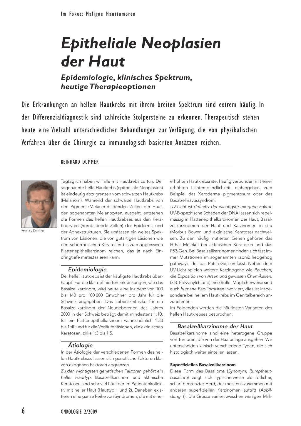 Die Erkrankungen an hellem Hautkrebs mit ihrem breiten Spektrum sind extrem häufig. In der Differenzialdiagnostik sind zahlreiche Stolpersteine zu erkennen. Therapeutisch stehen heute eine Vielzahl unterschiedlicher Behandlungen zur Verfügung, die von physikalischen Verfahren über die Chirurgie zu immunologisch basierten Ansätzen reichen.