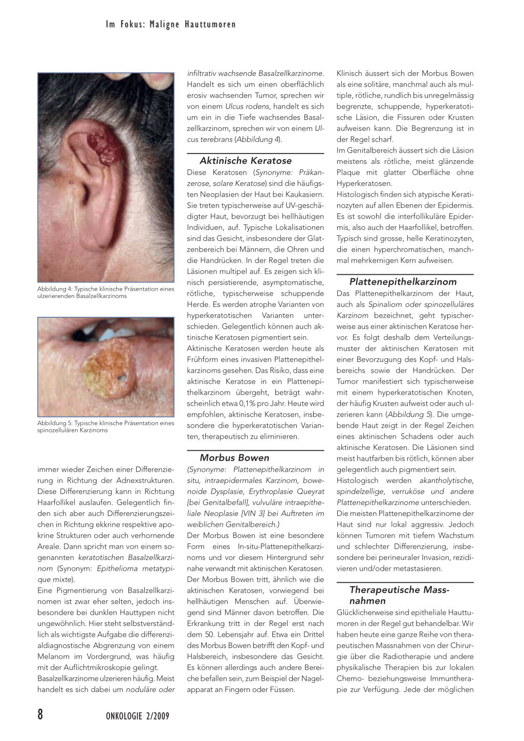therapeutischen Optionen hat gewisse Vor- und Nachteile. Prinzipiell sollten flächige (= in die Breite) wachsende, epitheliale Tumoren anders behandelt werden als knotige und infiltrative Prozesse. Deshalb werden im Folgenden die therapeutischen Optionen für diese beiden Prozesse getrennt beschrieben.