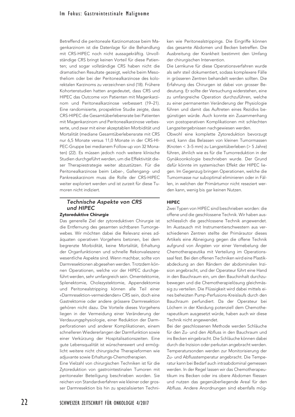 22 SCHWEIZER ZEITSCHRIFT FÜR ONKOLOGIE 4/2017
