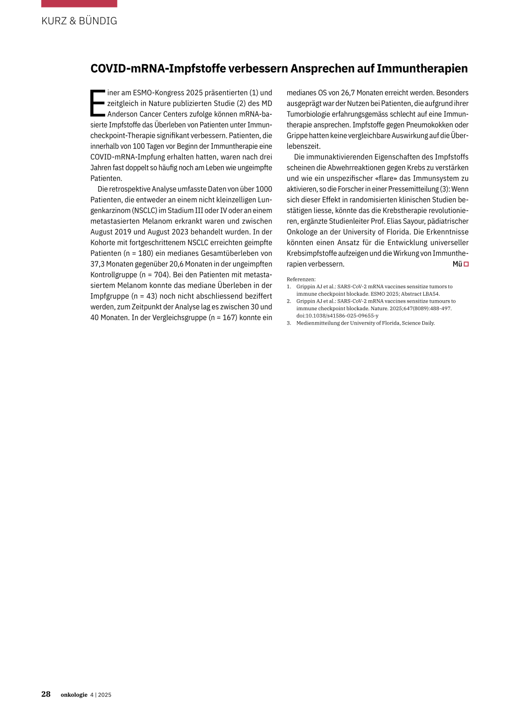 immune checkpoint blockade. ESMO 2025; Abstract LBA54. 2. Grippin AJ et al.: SARS-CoV-2 mRNA vaccines sensitize tumours to