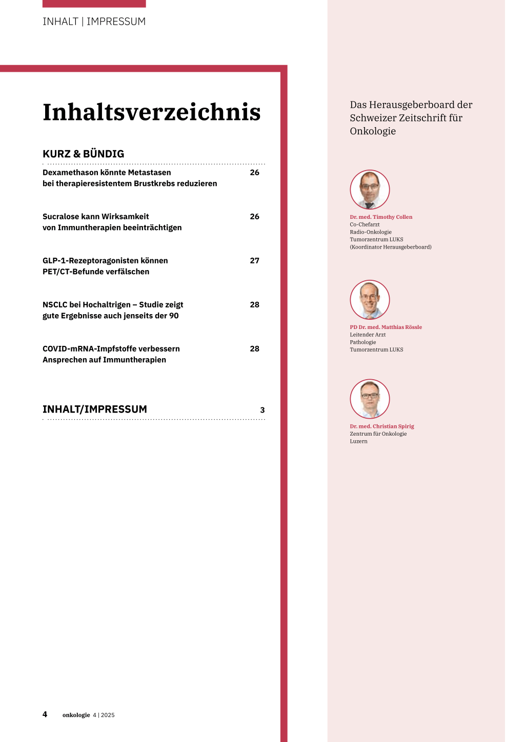 Das Herausgeberboard der Schweizer Zeitschrift für Onkologie