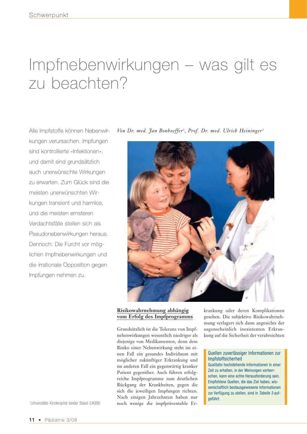 Korrespondenzadresse: Dr. Jan Bonhoeffer Infektiologie und Vakzinologie Universitäts-Kinderspital beider Basel (UKBB) Postfach, 4005 Basel