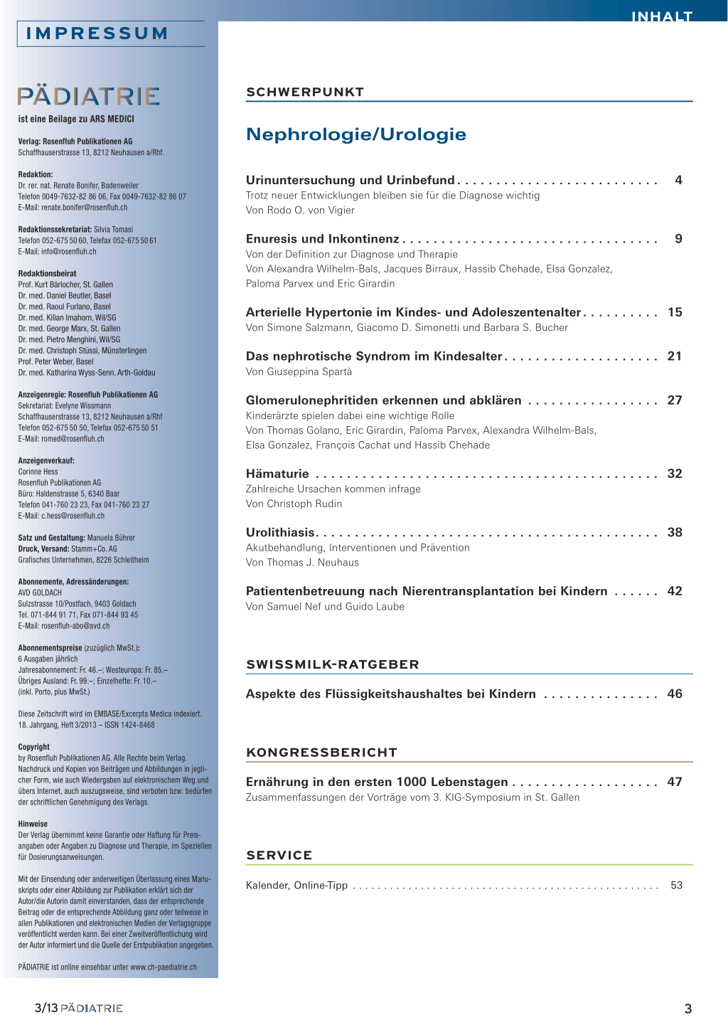 Redaktionsbeirat Prof. Kurt Bärlocher, St. Gallen Dr. med. Daniel Beutler, Basel Dr. med. Raoul Furlano, Basel Dr. med. Kilian Imahorn, Wil/SG Dr. med. George Marx, St. Gallen Dr. med. Pietro Menghini, Wil/SG Dr. med. Christoph Stüssi, Münsterlingen Prof. Peter Weber, Basel Dr. med. Katharina Wyss-Senn, Arth-Goldau