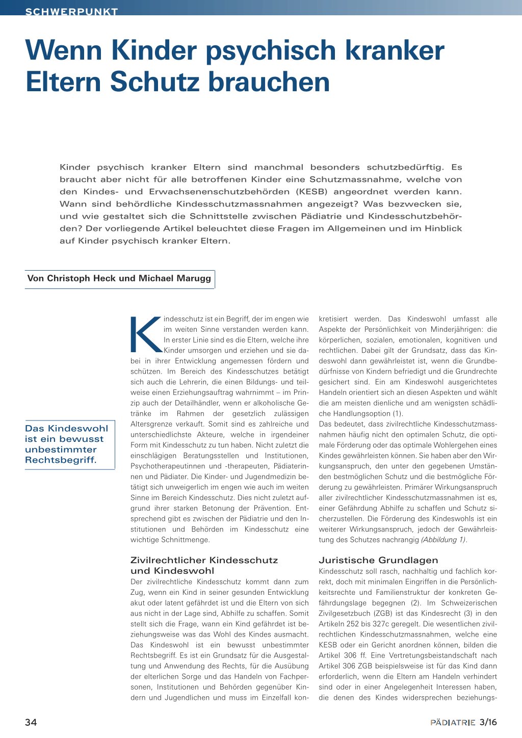 Kinder psychisch kranker Eltern sind manchmal besonders schutzbedürftig. Es braucht aber nicht für alle betroffenen Kinder eine Schutzmassnahme, welche von den Kindes- und Erwachsenenschutzbehörden (KESB) angeordnet werden kann. Wann sind behördliche Kindesschutzmassnahmen angezeigt? Was bezwecken sie, und wie gestaltet sich die Schnittstelle zwischen Pädiatrie und Kindesschutzbehörden? Der vorliegende Artikel beleuchtet diese Fragen im Allgemeinen und im Hinblick auf Kinder psychisch kranker Eltern.