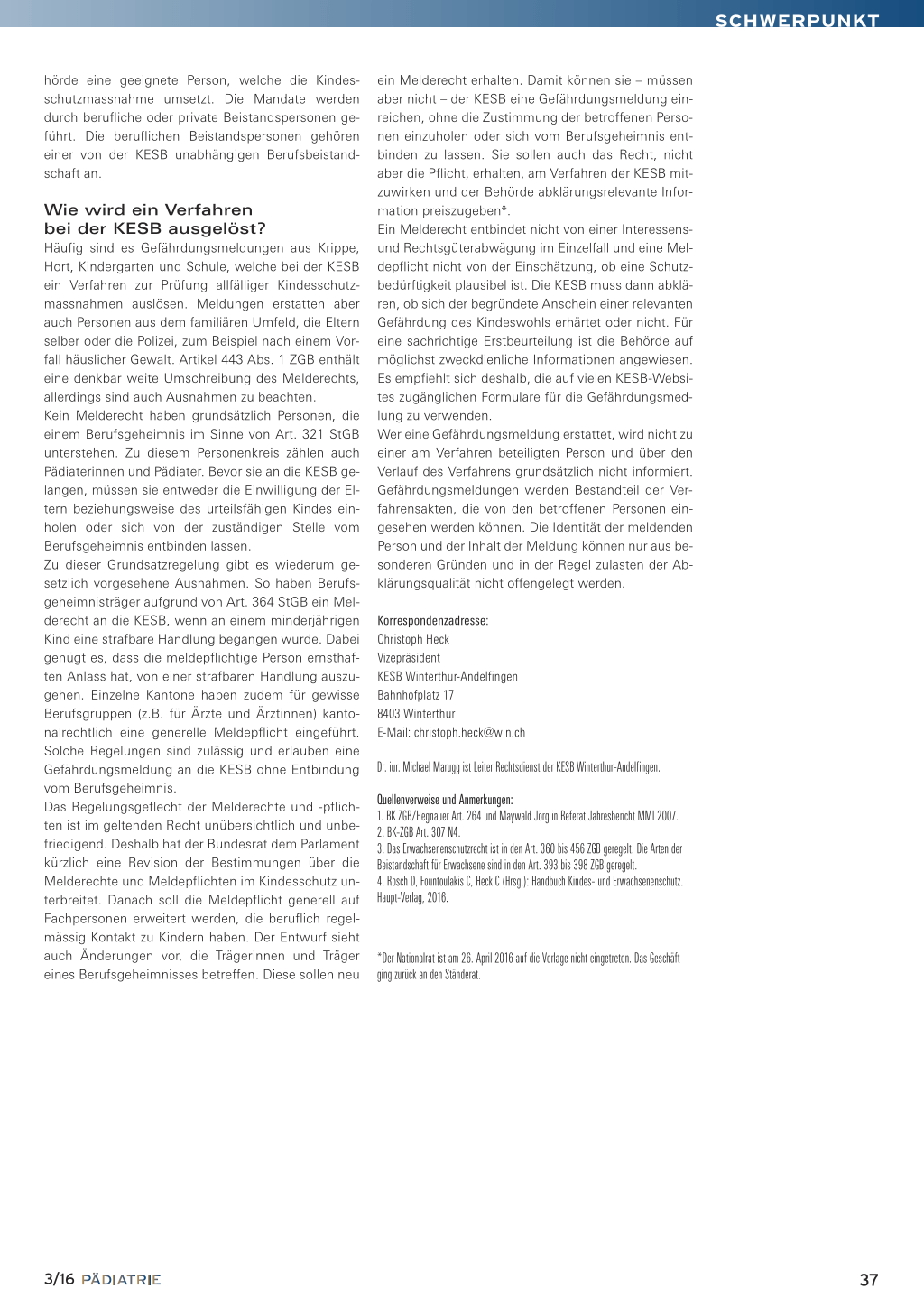 Korrespondenzadresse: Christoph Heck Vizepräsident KESB Winterthur-Andelfingen Bahnhofplatz 17 8403 Winterthur E-Mail: christoph.heck@win.ch
