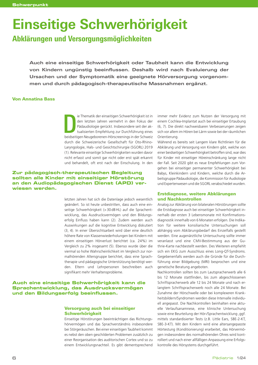 Die Thematik der einseitigen Schwerhörigkeit ist in den letzten Jahren vermehrt in den Fokus der Pädaudiologie gerückt. Insbesondere seit der aktualisierten Empfehlung zur Durchführung eines