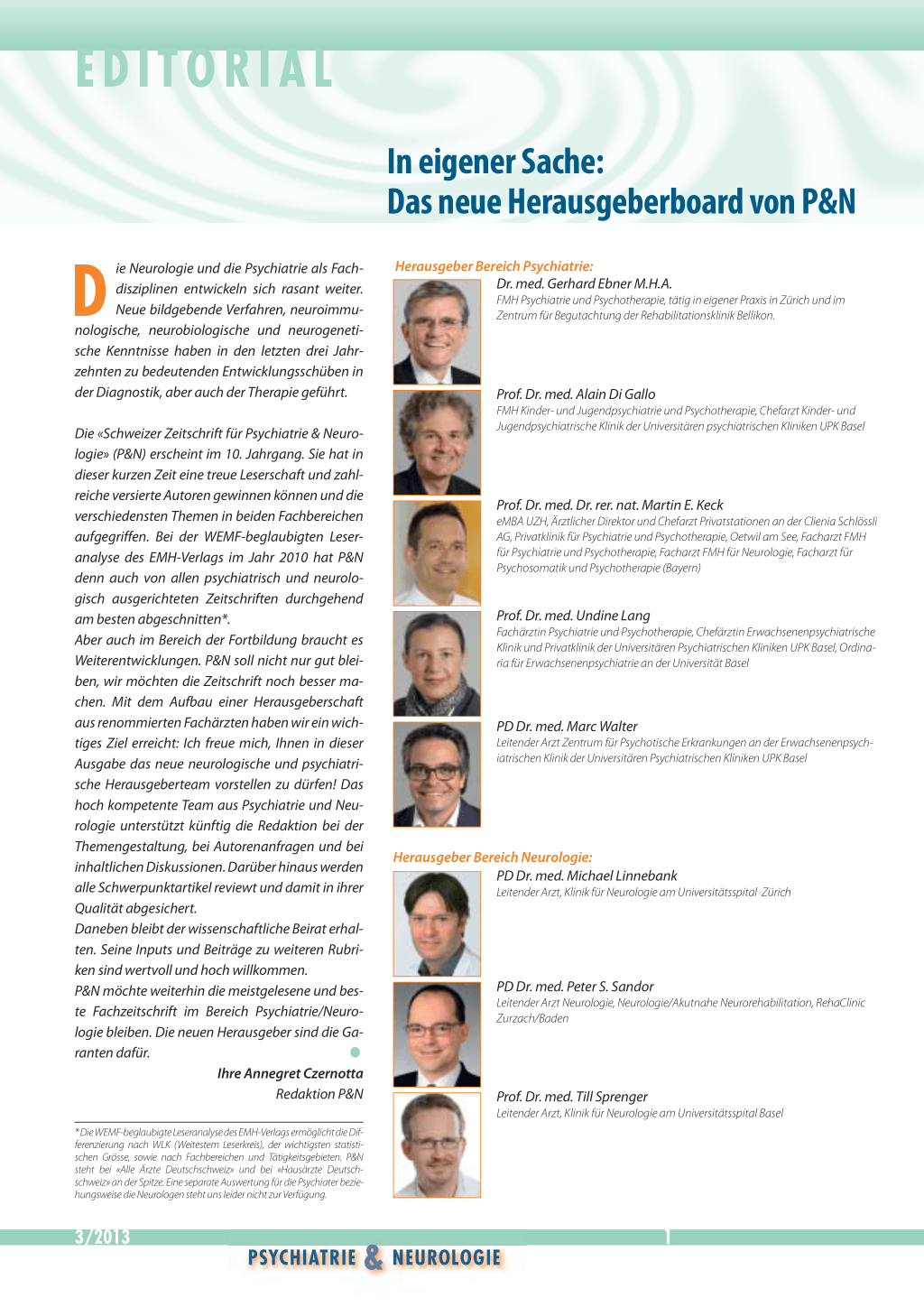 * Die WEMF-beglaubigte Leseranalyse des EMH-Verlags ermöglicht die Differenzierung nach WLK (Weitestem Leserkreis), der wichtigsten statistischen Grösse, sowie nach Fachbereichen und Tätigkeitsgebieten. P&N steht bei «Alle Ärzte Deutschschweiz» und bei «Hausärzte Deutschschweiz» an der Spitze. Eine separate Auswertung für die Psychiater beziehungsweise die Neurologen steht uns leider nicht zur Verfügung.