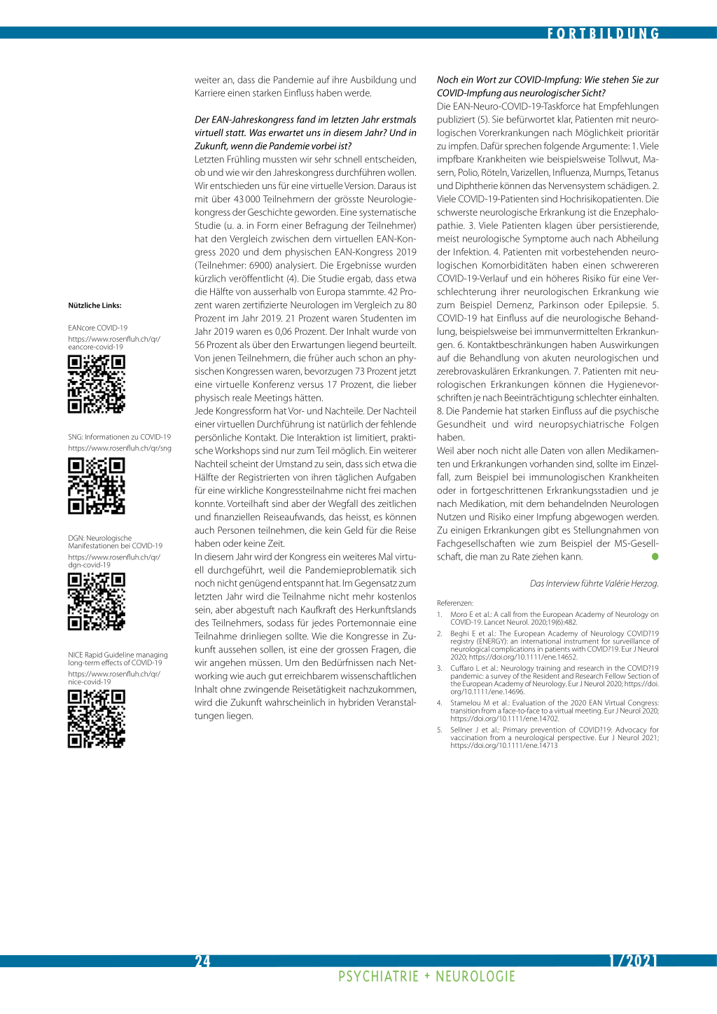 Referenz: 1. Beghi E: EAN Neuro-COVID Task Force. The European Academy of