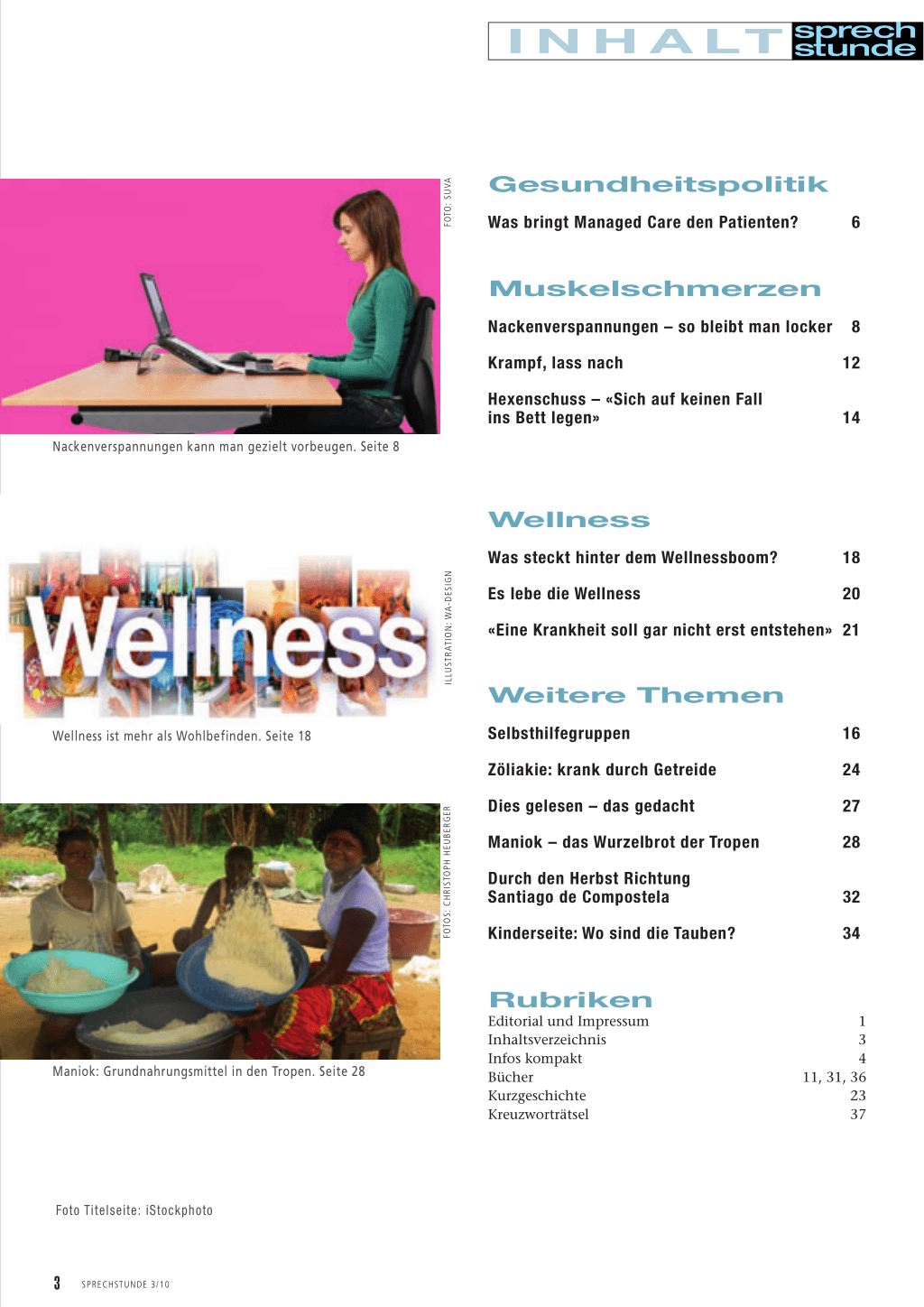 Selbsthilfegruppen Zöliakie: krank durch Getreide Dies gelesen – das gedacht Maniok – das Wurzelbrot der Tropen Durch den Herbst Richtung Santiago de Compostela Kinderseite: Wo sind die Tauben?