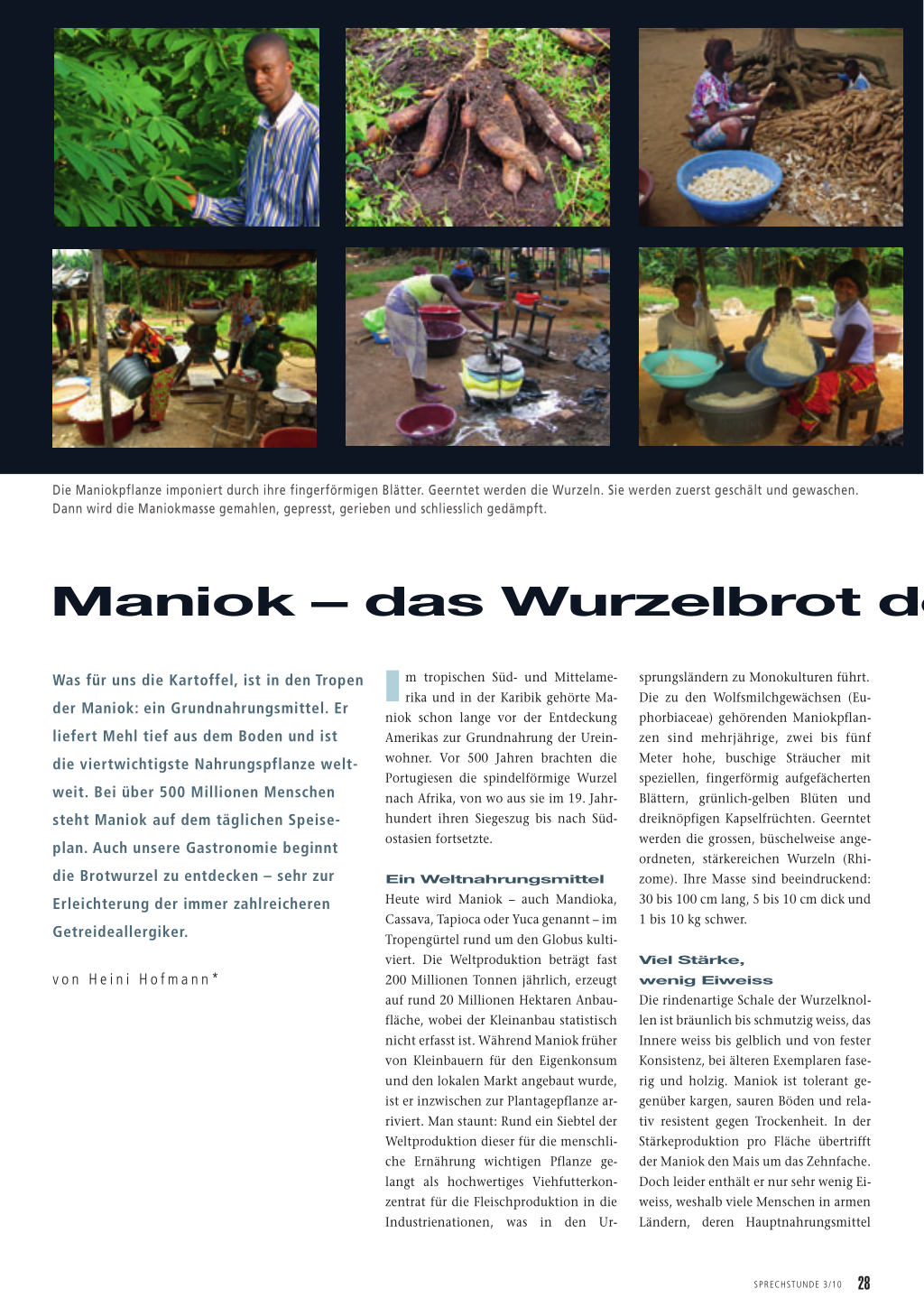 Ein Weltnahrungsmittel Heute wird Maniok – auch Mandioka, Cassava, Tapioca oder Yuca genannt – im Tropengürtel rund um den Globus kultiviert. Die Weltproduktion beträgt fast 200 Millionen Tonnen jährlich, erzeugt auf rund 20 Millionen Hektaren Anbaufläche, wobei der Kleinanbau statistisch nicht erfasst ist. Während Maniok früher von Kleinbauern für den Eigenkonsum und den lokalen Markt angebaut wurde, ist er inzwischen zur Plantagepflanze arriviert. Man staunt: Rund ein Siebtel der Weltproduktion dieser für die menschliche Ernährung wichtigen Pflanze gelangt als hochwertiges Viehfutterkonzentrat für die Fleischproduktion in die Industrienationen, was in den Ur-