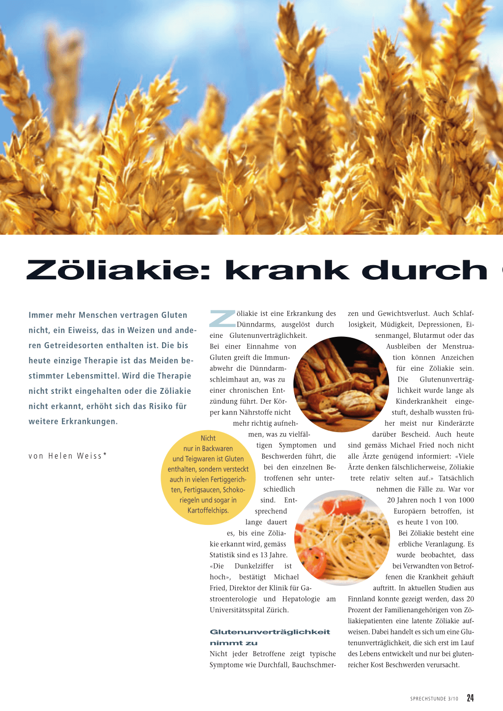 darüber Bescheid. Auch heute sind gemäss Michael Fried noch nicht alle Ärzte genügend informiert: «Viele Ärzte denken fälschlicherweise, Zöliakie trete relativ selten auf.» Tatsächlich